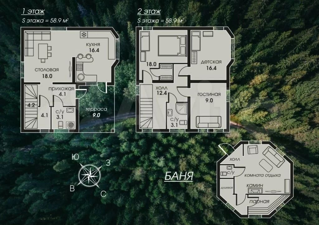 Чердак, гаражи и хозяйственные постройки (котельная, русская баня, беседка, 2 гаража на 4 автомашины) выполнены также из кирпича на монолитных фундаментных плитах, общей площадью 230 м2, не включены в площадь дома.